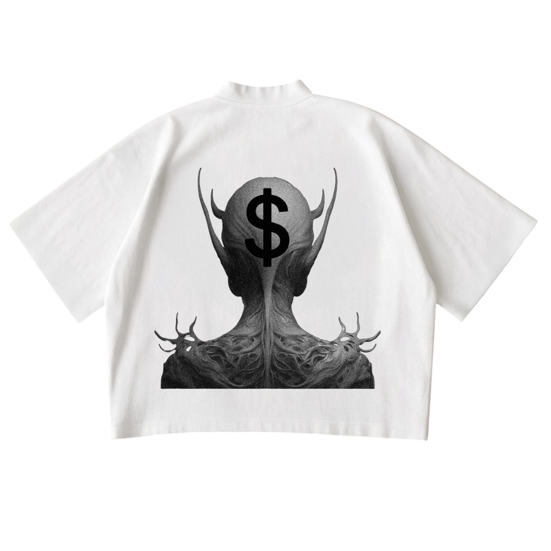 “The Property Collection design contrasts beauty and corruption fronted by a gorgeous woman symbolizing love and purity, while the demon on the back, branded with a money sign, represents how ego, wealth, and status can distort and destroy relationships. It’s a reminder that not everything glamorous is good for the heart.”
